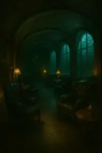 Picture a long, low-ceilinged room under the Black Lake. The greenish light filtering through the windows reveals ornate, high-backed chairs and silver lamps.